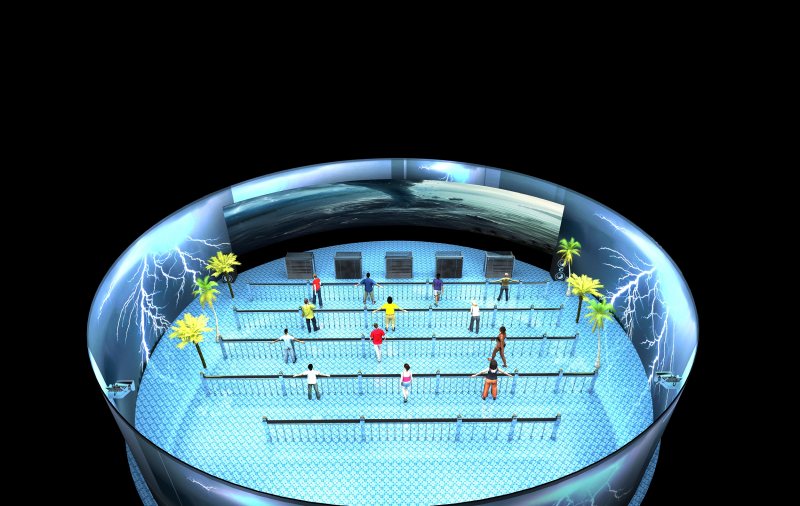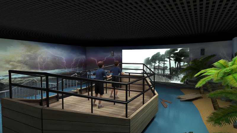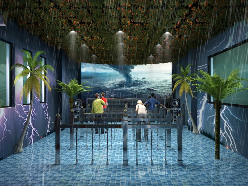 科普館臺(tái)風(fēng)體驗(yàn)館是VR通過3D視頻技術(shù)、動(dòng)感平臺(tái)技術(shù)、環(huán)境特效技術(shù)三者結(jié)合起來,模擬令人生畏的“臺(tái)風(fēng)”來襲的科普、娛樂兼具的創(chuàng)新項(xiàng)目。 體驗(yàn)者走進(jìn)臺(tái)風(fēng)體驗(yàn)館,帶上3D眼睛,在身臨其境臺(tái)風(fēng)體驗(yàn)館動(dòng)感平臺(tái)上手握扶欄,待一切安全防護(hù)措施俱備,精彩震撼的臺(tái)風(fēng)效果體驗(yàn)即可開始。