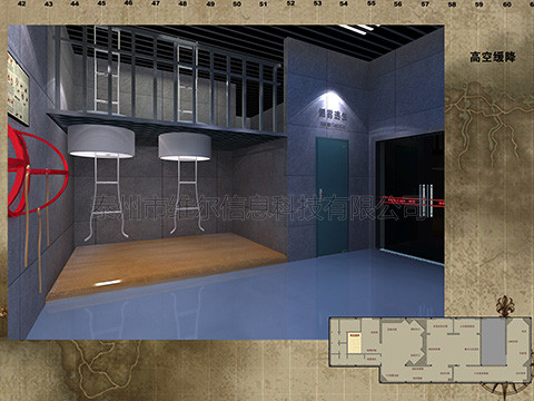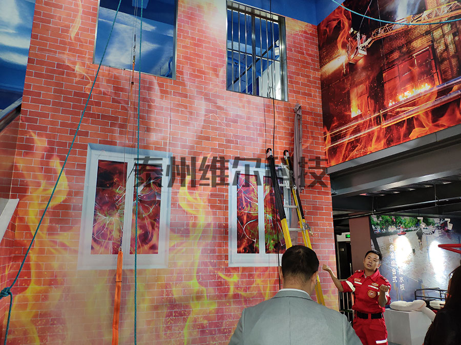 本展項主要是遇到室內(nèi)著火或地震的情況下,身處高層,如何利用緩降器和繩索,從高處快速撤離到地面。 對高空緩降的生存技能進行演練,不單單是讓體驗者學(xué)會如何使用緩降繩索,更是克服面臨高空恐懼的心理適應(yīng)。