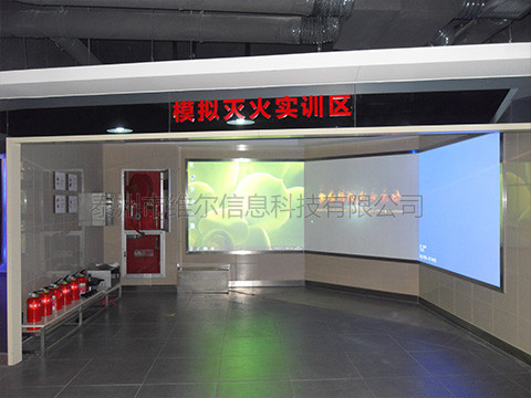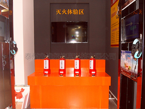 本體驗(yàn)系統(tǒng)是通過計(jì)算機(jī)主機(jī)、顯示設(shè)備(投影儀或平板電視)以及電子互動配套設(shè)備三部分共同組成,可以使體驗(yàn)者通過手持真實(shí)的2KG滅火器,對墻面投影或電視機(jī)模擬的火災(zāi)場景進(jìn)行滅火體驗(yàn),手中的滅火器噴向哪里,畫面中哪里的火就會被熄滅,在限定的時(shí)間內(nèi),如果全部火熄滅,則滅火成功,否則提示滅火失敗。本系統(tǒng)中通過對不同場景的識別選擇滅火器,互動體驗(yàn)的同時(shí)又能學(xué)習(xí)到各種滅火器的使用知識,充滿樂趣,常用于相關(guān)行業(yè)展廳體驗(yàn)、科普館及青少年兒童體驗(yàn)館、知識培訓(xùn)機(jī)構(gòu)等場所。 在展廳中選定位置,墻面安裝顯示設(shè)備,如大屏液晶電視,或投影儀投影,設(shè)置1個臺面,供參觀者使用,臺面有5個按鈕,1個知識學(xué)習(xí),4個場景畫面按鈕各一個。當(dāng)參觀者到來后,按“知識學(xué)習(xí)”可以快速學(xué)習(xí)滅火知識,按4個場景的按鈕就可以進(jìn)行滅火體驗(yàn)了。