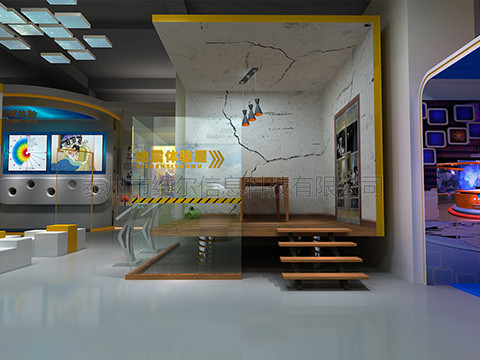 通過房屋內(nèi)電視播放地震場(chǎng)景視頻, 視頻是配合地震平臺(tái)的重要組成部分。地震前可以演示防震的科普知識(shí),提示在地震來臨時(shí)如何逃避、自救、并告訴體驗(yàn)者在體驗(yàn)過程中根據(jù)提示進(jìn)行操作。