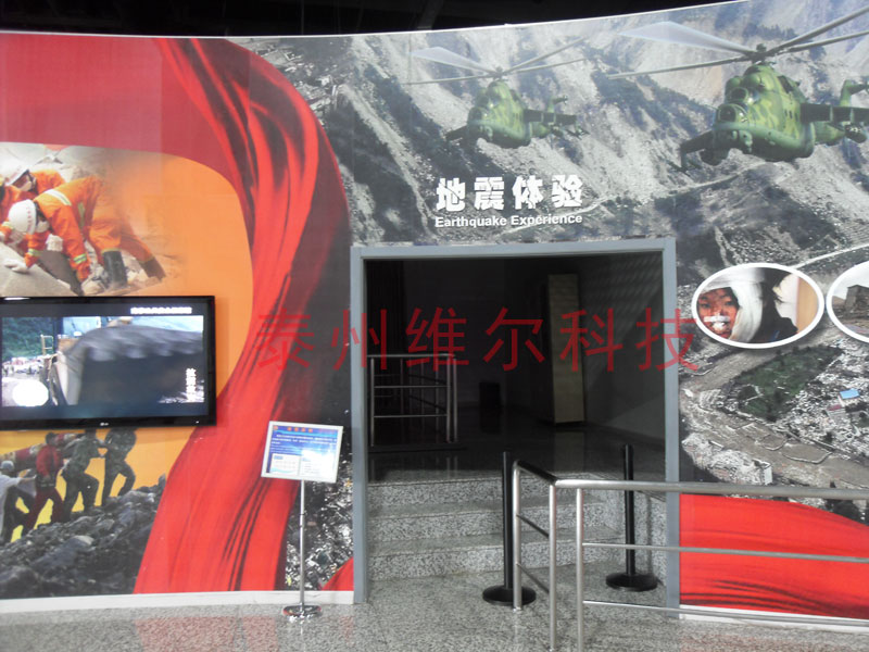 地震體驗平臺能夠模擬有感地震、中強震、強震; 六自由度地震模擬平臺、六自由度地震體驗平臺 一、產(chǎn)品選型 二、技術(shù)參數(shù)(平臺) 三、功能簡介 六自由度地震體驗平臺采用六軸運動控制系統(tǒng),適用于地震科普場館、科技館、游樂場所使用,體驗地震的感覺,體現(xiàn)地震時地面劇烈抖動、波動縱波、橫波,加之視景、音響、特效的有機配合,讓人身臨其境。更進一步了解地震的相關(guān)知識,達到一定的科普效果,提高人們的防震減災意識。 地震體驗平臺模擬地震災害的多個震級的變化效果為主線,突出展示人類認識自然、揭示自然,提高人們對地震的認識,加以防范,在地震來臨時能采取自救措施。 平臺采用鋼結(jié)構(gòu)框架和仿真平臺技術(shù)相結(jié)合,結(jié)構(gòu)緊湊、模擬環(huán)境形象逼真、運行可靠。內(nèi)設音響系統(tǒng),隨著地震等級的變化,產(chǎn)生不同的地震音響效果,語音系統(tǒng)也相應介紹不同的地震知識。 四、配置清單 體驗臺、平臺護欄、復合地板、臺階、閃電燈、煙霧器、控制主機、投影幕(200寸)、音響、控制箱、液壓系統(tǒng)等 五、效果圖 六、現(xiàn)場圖 體驗平臺 體驗小屋 型號 尺寸 乘員 型號 尺寸 乘員 TYPT-01 2.0m*1.5m 4人 TYXW-01 2.2m*3.0m 8人 TYPT-02 2.0m*2.0m 5人 TYXW-02 2.5m*4.0m 10人 TYPT-03 2.2m*3.0m 8人 TYXW-03 3.0m*5.0m 12人 TYPT-04 3.0m*5.0m 20人 TYXW-04 4.0m*5.0m 15人 TYPT-05 4.0m*5.0m 25人 高度 平臺距地面高度參考尺寸600mm~750mm 名 稱 參數(shù) 名稱 參數(shù) 運動形式 橫波,縱波,震動 電源電壓 380 V 最大承載 定員5~30人 控制電壓 24 V 泵站工作壓力 4~5MPa 設備總功率 8KW 油箱容積 120L 液壓介質(zhì) 抗磨液壓油L-HM46 演出程序 計算機自動控制 設備自重 1.5T