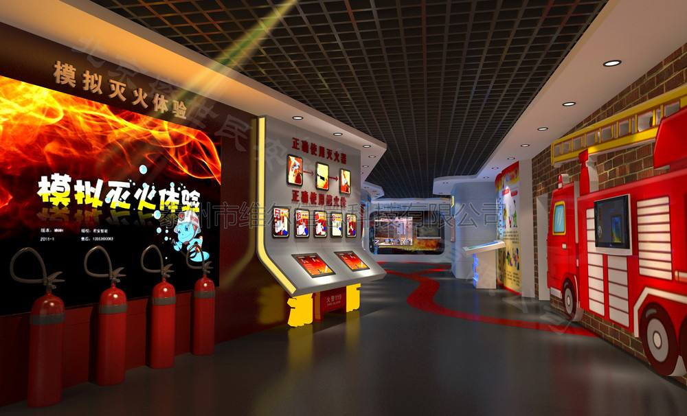 模擬滅火系統(tǒng)軟件采用大屏幕顯示模擬滅火系統(tǒng)界面,用戶可通過滅火互動臺選擇要模擬的類容,可選擇滅火知識培訓、滅火體驗和知識問答的模擬畫面。在滅火體驗中主要是播放常見的(辦公場地火災、電器火災、廚房火災、木材廠火災)等火災場景,演練者選擇正確的滅火器,拔掉插銷,對準“大火根部”,按下鴨嘴閥,判斷系統(tǒng)通過傳感器得到滅火器的噴射角度和噴射時間,大火在滅火器噴射下漸漸熄滅,畫面顯示滅火成功,否則火越來越大的情況,顯示滅火失敗。演練者通過滅火演練,學習滅火知識及發(fā)生火災時應采取的有效措施。 模擬滅火有8種不同的場景可供選擇,體驗者可通過互動裝置臺選擇場景,進入場景后開始選擇適合場景的滅火器,畫面會出現(xiàn)文字提醒選擇滅火器的操作方法;如果選擇錯誤的滅火器滅火,畫面火勢會變大,隨后,畫面切到人物被燒傷的動漫告訴別人不要學習他。選擇正確的滅火器后,體驗者開始移動滅火器,使紅外對準火苗移動,火勢逐漸熄滅。(如果在一定時間內(nèi)沒有準確定位火苗位置火勢會變大且提示再次選擇) 場景一 客廳沙發(fā)突然起火 場景描述:畫面展示了一座典型的家庭房間,由一個很小的火源導致沙發(fā)起火,同時用文字提醒此類為a類固體火災請選擇滅火器,參觀者正確選擇并拿起按下滅火器,一道紅外的光好像從水管末端射出來,對準火苗根部來回移動滅火器,直到火被完全撲滅。 適合此場景滅火器有:干粉滅火器,泡沫滅火器,清水滅火器。 場景二 木材廠的木材突然起火 場景描述:畫面展示了一所典型的木材廠環(huán)境,由于未熄滅的煙頭引發(fā)廠房發(fā)生火災,同時用文字提醒此類為a類含碳固體火災提示選擇滅火器,參觀者正確選擇并拿起按下滅火器,對準火苗根部來回移動滅火器,直到火被完全撲滅。 適合此場景滅火器有:泡沫滅火器,清水滅火器。 場景三 廠區(qū)內(nèi)一輛汽車在燃燒 場景描述:畫面提示廠區(qū)一輛汽車因汽油泄漏引發(fā)火災。一廠區(qū)類的某汽車正在漏油,一年輕小伙將未熄滅的煙頭丟落在油面上引起火災,同時用文字表明此類為b類油品火災提醒選擇滅火器,參觀者正確選擇并拿起按下滅火器,對準火苗根部來回移動滅火器,直到火被完全撲滅。 適合此場景滅火器有:干粉滅火器,二氧化碳滅火器(因為汽車火災不僅是油品火災還伴隨著電器火災) 場景四 油浸電力變壓器引發(fā)火災 場景描述:畫面提示某廠房一油浸電力變壓器過載引發(fā)火災。一廠房油浸電力變壓器由于電壓過載發(fā)生故障導致,在箱體最薄弱處引發(fā)燃燒,同時用文字表明此類為b類油品火災提醒選擇滅火器,參觀者正確選擇并拿起按下滅火器,對準火苗根部來回移動滅火器,直到火被完全撲滅。 適合此場景滅火器有:干粉滅火器,二氧化碳滅火器(泡沫滅火器可用來撲滅地面上的油浸) 場景五 臥室電器起火 場景描述:畫面展示了室內(nèi)電視機電路短路,電路迸射出火花,然后開始燃燒,同時用文字提醒此類為d類電器火災請選擇滅火器,參觀者正確選擇并拿起按下滅火器,對準火苗根部來回移動滅火器,直到火被完全撲滅。 適合此場景滅火器有:干粉滅火器,二氧化碳滅火器。 場景六 辦公室電路板起火 場景描述:畫面展示了辦公室內(nèi)的一個電路板過載,電路迸射出火花,然后開始燃燒,同時用文字表明此類為d類電器火災提醒選擇滅火器,參觀者正確選擇并拿起按下滅火器,對準火苗根部來回移動滅火器,直到火被完全撲滅。 適合此場景滅火器有:干粉滅火器,二氧化碳滅火器。 場景七 家庭廚房起火 場景描述:畫面展示了一座典型的廚房環(huán)境。由于未關(guān)閉廚房燃氣灶導致起火,同時用文字提醒此類為c類可燃性氣體火災請選擇滅火器,參觀者正確選擇并拿起按下滅火器,對準火苗根部來回移動滅火器,直到火被完全撲滅。 適合此場景滅火器有:干粉滅火器,二氧化碳滅火器,清水滅火器。 場景八 化學實驗室起火 場景描述:畫面展示某化學實驗室由于酒精燈傾倒引發(fā)實驗室火災,同時用文字提醒此類為b類水溶性液體火災請選擇滅火器,參觀者正確選擇并拿起按下滅火器,對準火苗根部來回移動滅火器,直到火被完全撲滅。 適合此場景滅火器有:干粉滅火器,二氧化碳滅火器 如果5分鐘內(nèi)無人操作時,返回待機界面.